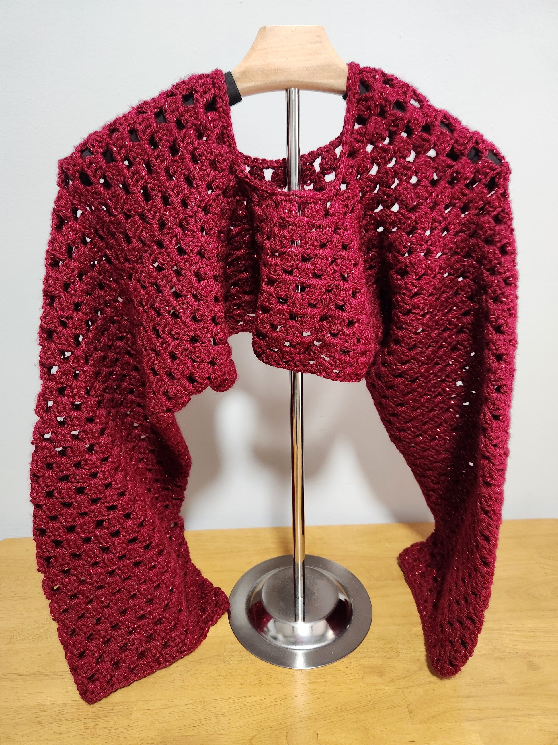 Sleeves - Red Glitter - Laid Flat 54" long x 8" tall cuff to cuff and 7" tall collar opening Actual color has sparkles and may appear darker/lighter depending on device Machine wash cold lay flat to dry (garment bag recommended)